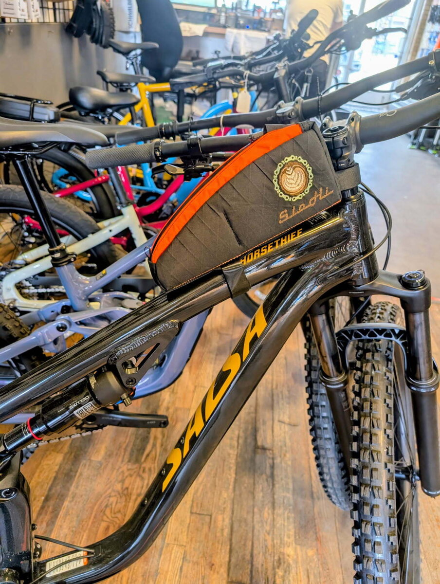 This one-of-a-kind top tube bag by JPaks was made here in Denver just for us at SloHi! Perfect for carrying keys, flat fix tools, and snacks of course!